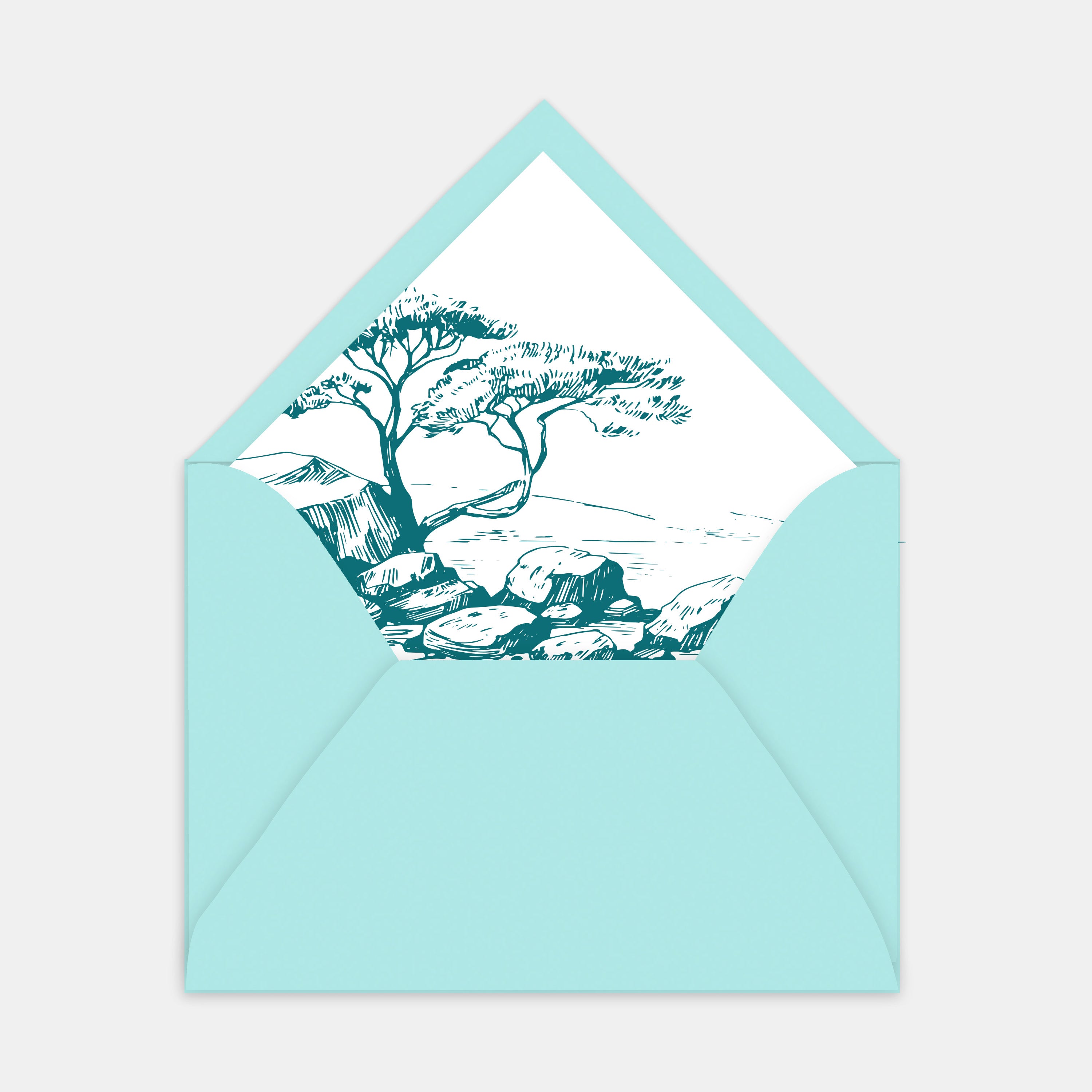 Ajoutez une touche d'élégance à votre correspondance avec notre doublure d'enveloppe gravure le sud. Fabriquée à Paris dans notre atelier avec du papier vélin 100g/m² certifiée FSC, cette doublure met en valeur l'illustration que vous avez choisi pour votre faire-part de mariage.