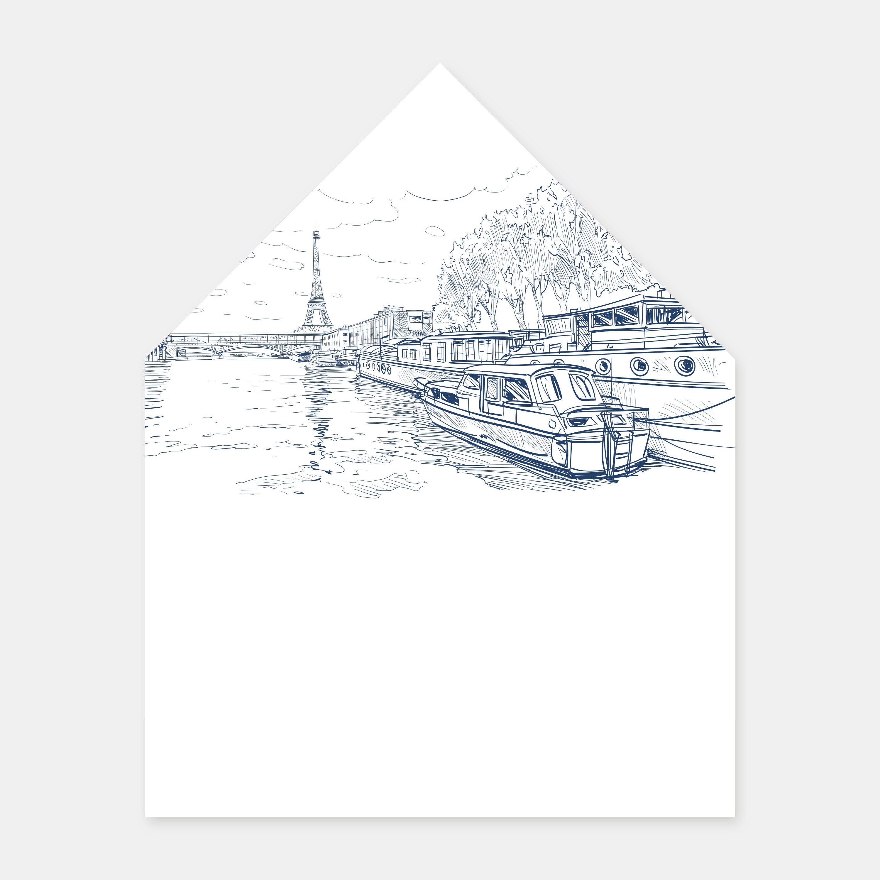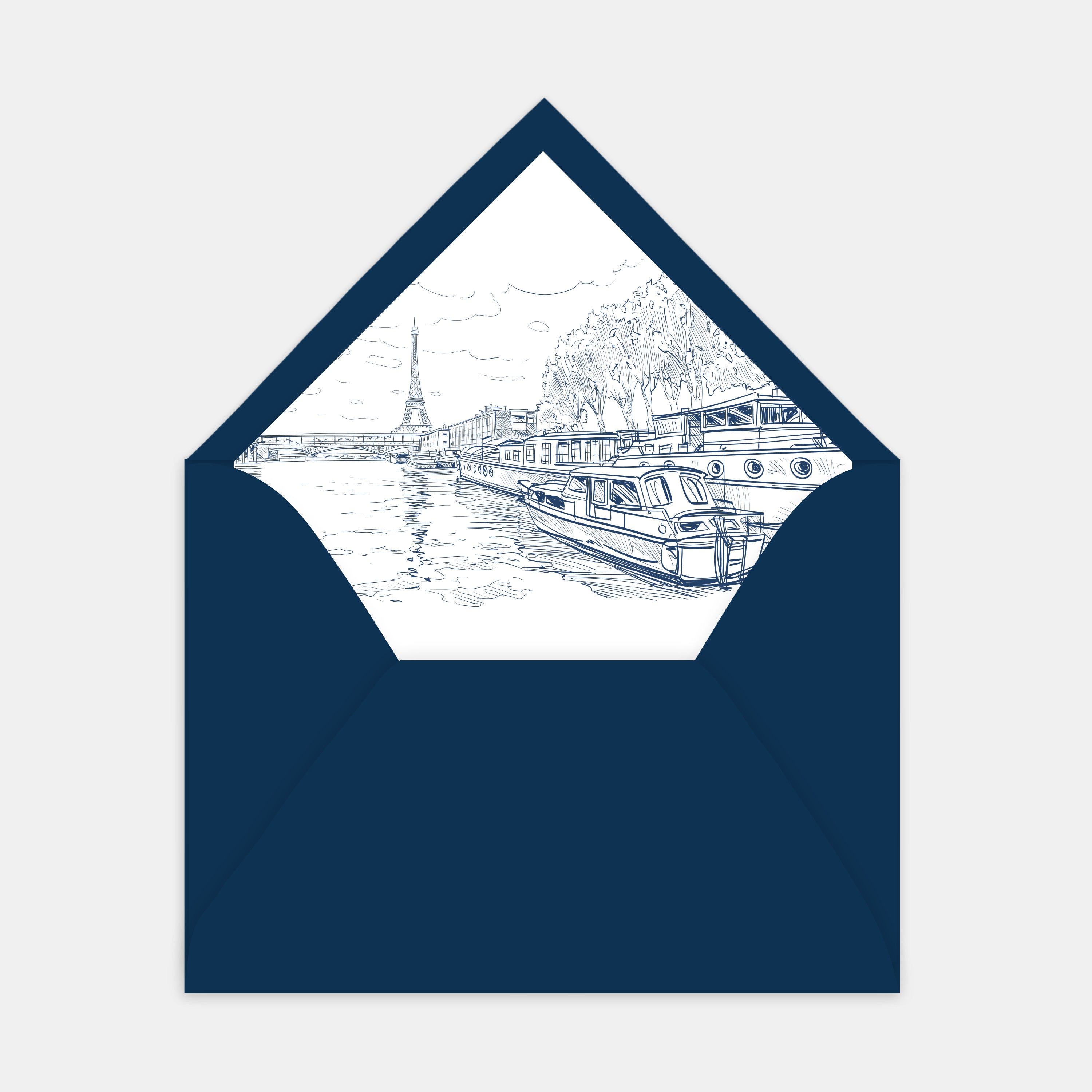 Ajoutez une touche d'élégance à votre correspondance avec notre doublure d'enveloppe gravure Paris. Fabriquée à Paris dans notre atelier avec du papier vélin 100g/m² certifiée FSC, cette doublure met en valeur l'illustration que vous avez choisi pour votre faire-part de mariage.