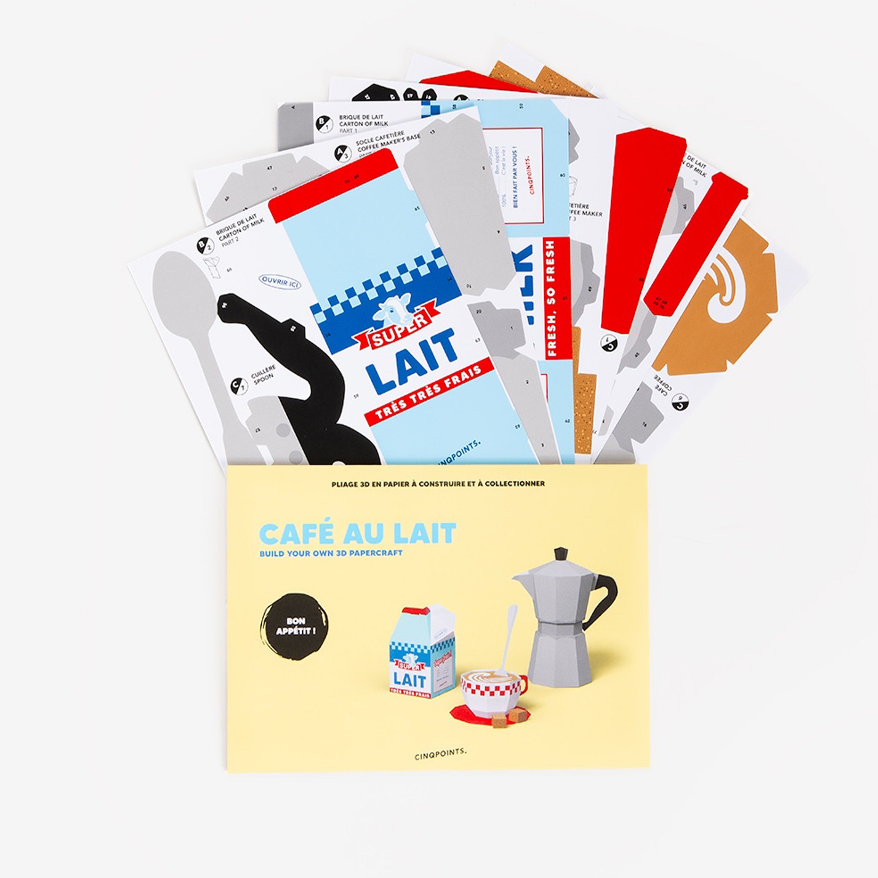 Avec cette maquette Café au lait, votre enfant découvrira, loin des écrans, la magie des volumes et de la géométrie dans l'espace tout en s'amusant. L’assemblage de la maquette se fait par un système d’encoches, il est inutile d'utiliser des ciseaux car l'ensemble est prédécoupé. Afin de renforcer la maquette et de la conserver plus longtemps , il est possible d’ajouter des petits points de colle en gel sur les endroits stratégiques. 100 % papier, 100% recyclable, 100 % cool !