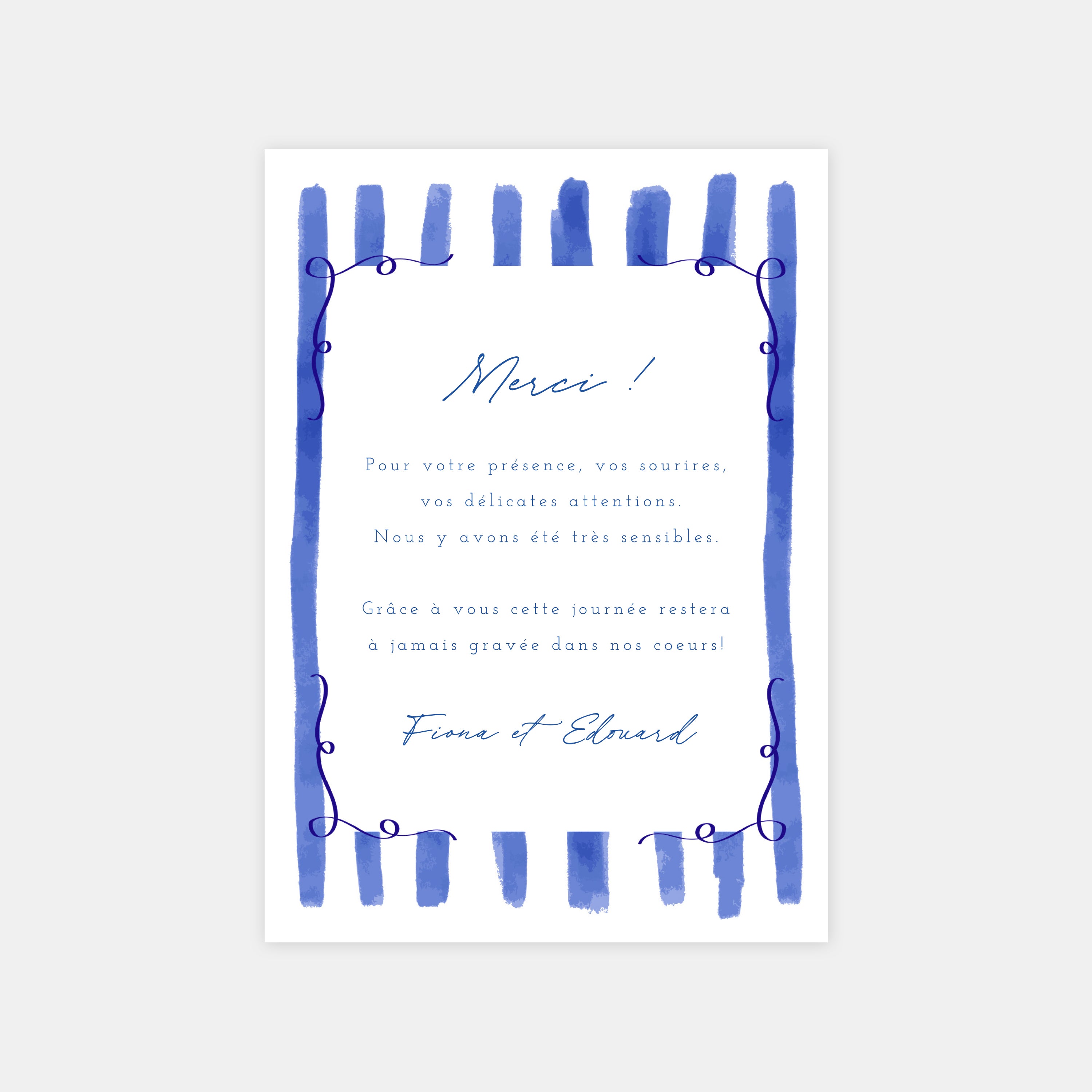 Tous les cartes de remerciements de notre collection mariage sont imprimés dans notre atelier parisien sur le plus beaux papiers de création certifiés FSC® de notre collection.