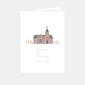Unser Taufheft an einem Festtag ist eine schöne Mischung aus einer Illustration, die eine handgezeichnete Kirche darstellt, und einem modernen Layout, das aus zwei wunderschönen Typografien besteht.