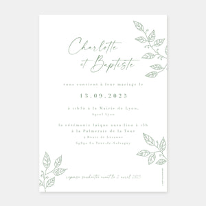 Unsere Hochzeits-Dankeskarte mit Blattwerk ist eine hübsche Mischung aus einer handgezeichneten Strichzeichnung von Blattwerk und einem weichen, modernen Layout aus zwei wunderschönen Typografien, einer handgeschriebenen und einer eher konventionellen.