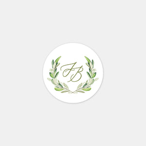 Unsere Hochzeitseinladung mit Blattmonogramm ist eine hübsche Mischung aus einem Aquarell, das ein Medaillon aus zwei Blattwerken darstellt, und einem Monogramm aus Initialen in einer weichen und modernen Schriftart. Diese Ankündigung erfolgt im vorgefalteten quadratischen Format.
