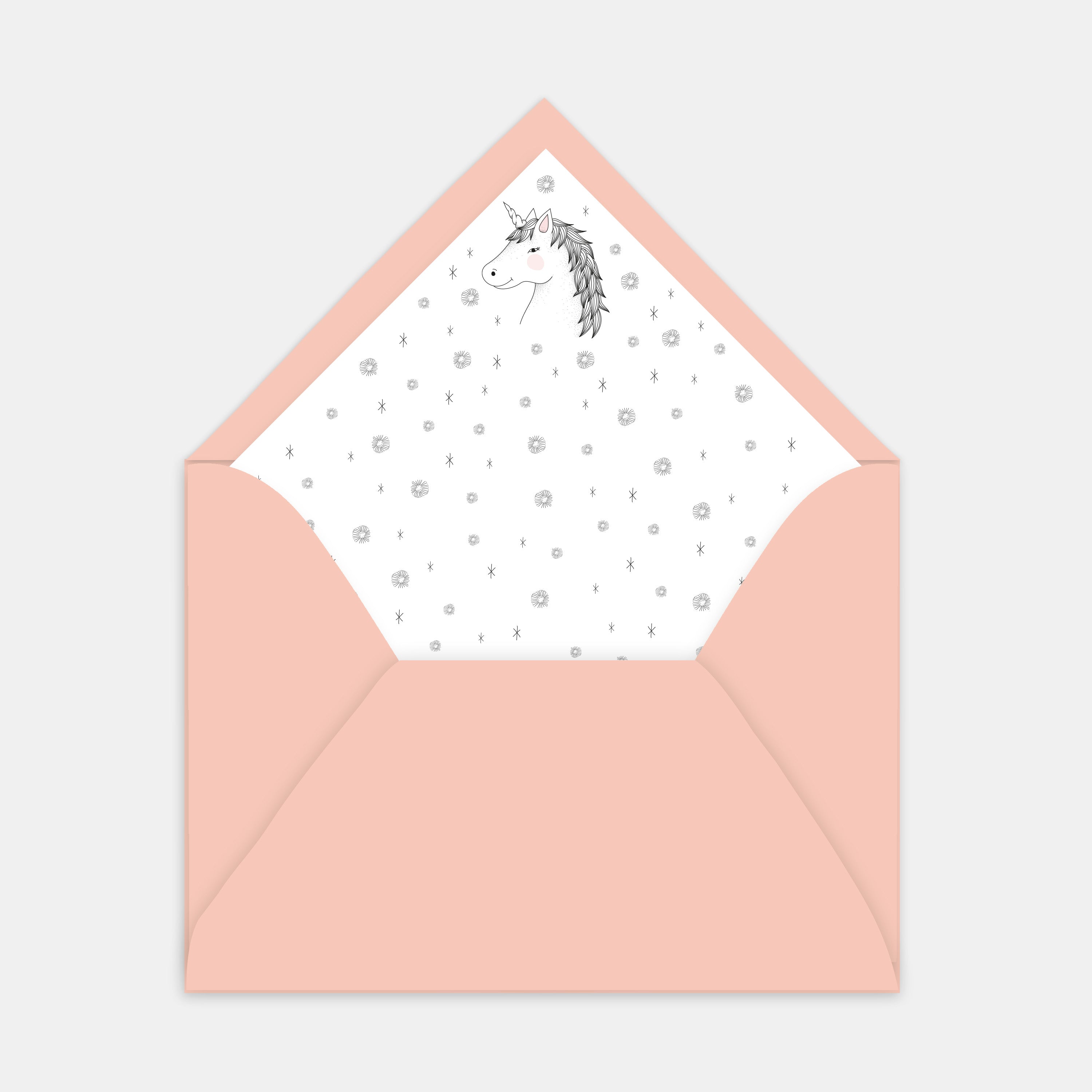 Ajoutez une touche d'élégance à votre correspondance avec notre doublure d'enveloppe licorne. Fabriquée à Paris dans notre atelier avec du papier vélin 100g/m² certifiée FSC, cette doublure met en valeur l'illustration que vous avez choisi pour votre faire-part de naissance, de baptême ou vos cartes de remerciements. Cette doublure d'enveloppe est compatible avec une enveloppe format 114x162 mm et 140x190 mm. Doublure d'enveloppe à coller vous-même avec un stick de colle