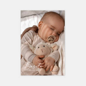 Our A Lovely Moment birth announcement is an elegant mix of two beautiful photos of your child and a modern and refined layout composed of two beautiful typographies.