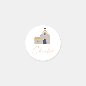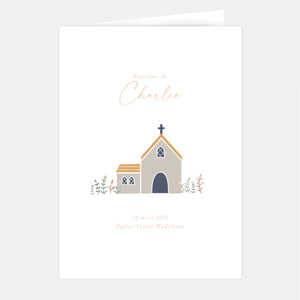 Our baptism bookmark on a feast day is a pretty mix of an illustration representing a hand-drawn church and a modern layout composed of two beautiful typographies on a simple card in bookmark format.
