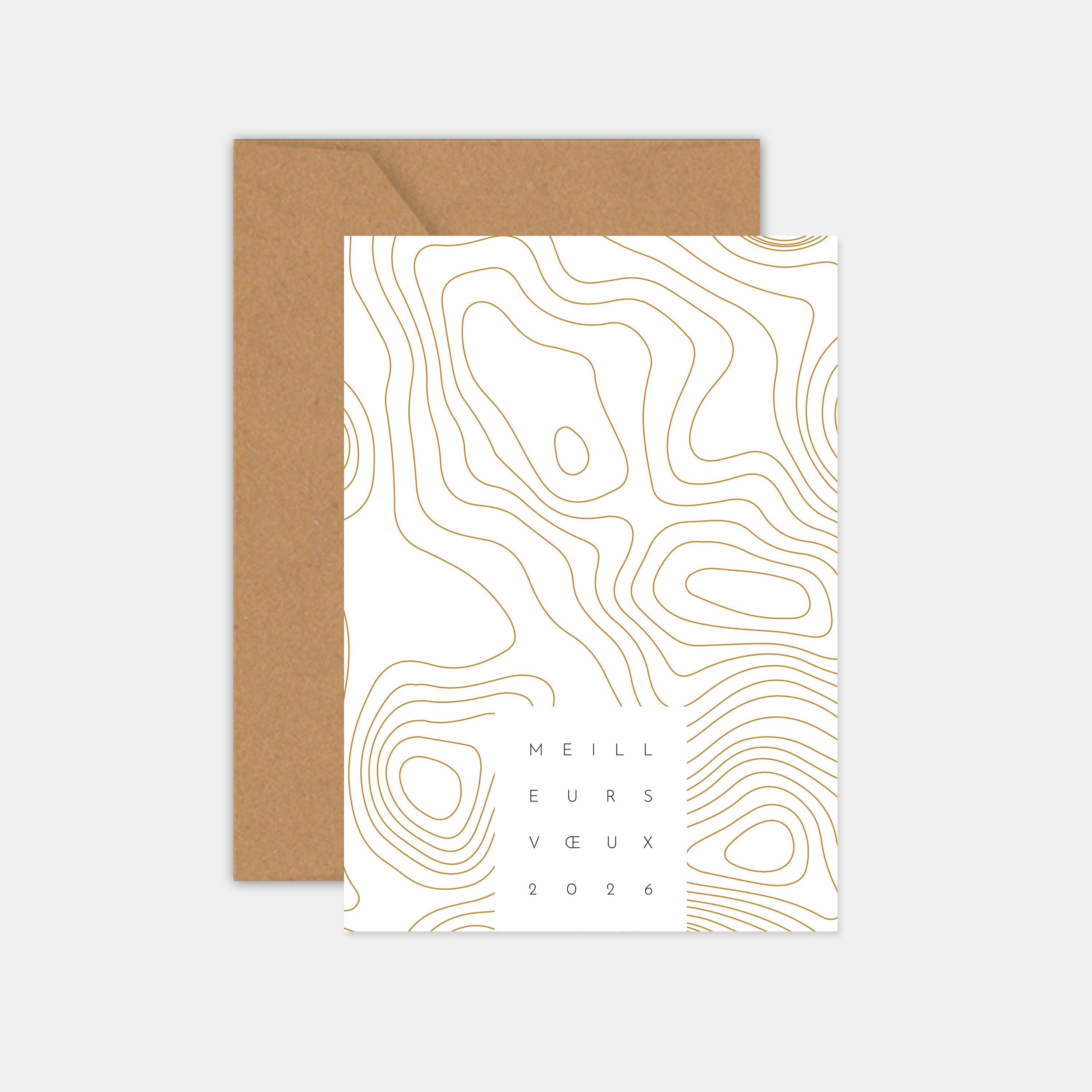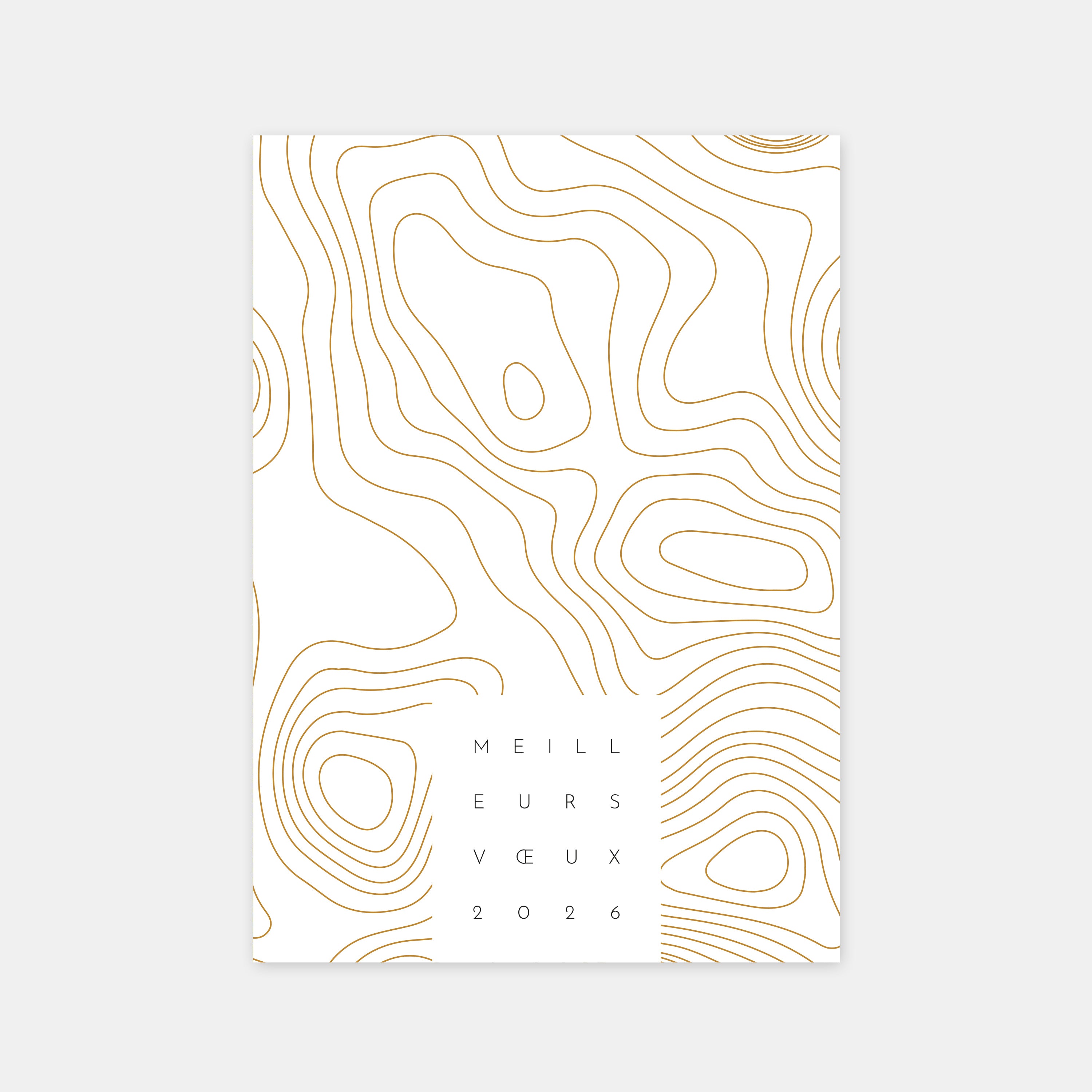 Cette carte de voeux a été imaginée par notre équipe créative. Vous pouvez personnaliser l'intérieur de cette carte en y ajoutant votre image ou photo, le logo de votre entreprise, un texte ou bien le laisser vide pour écrire votre message à la main. Toutes les cartes de voeux de notre collection sont imprimées dans notre atelier parisien sur le plus beaux papiers de création de notre collection tous certifiés FSC®.