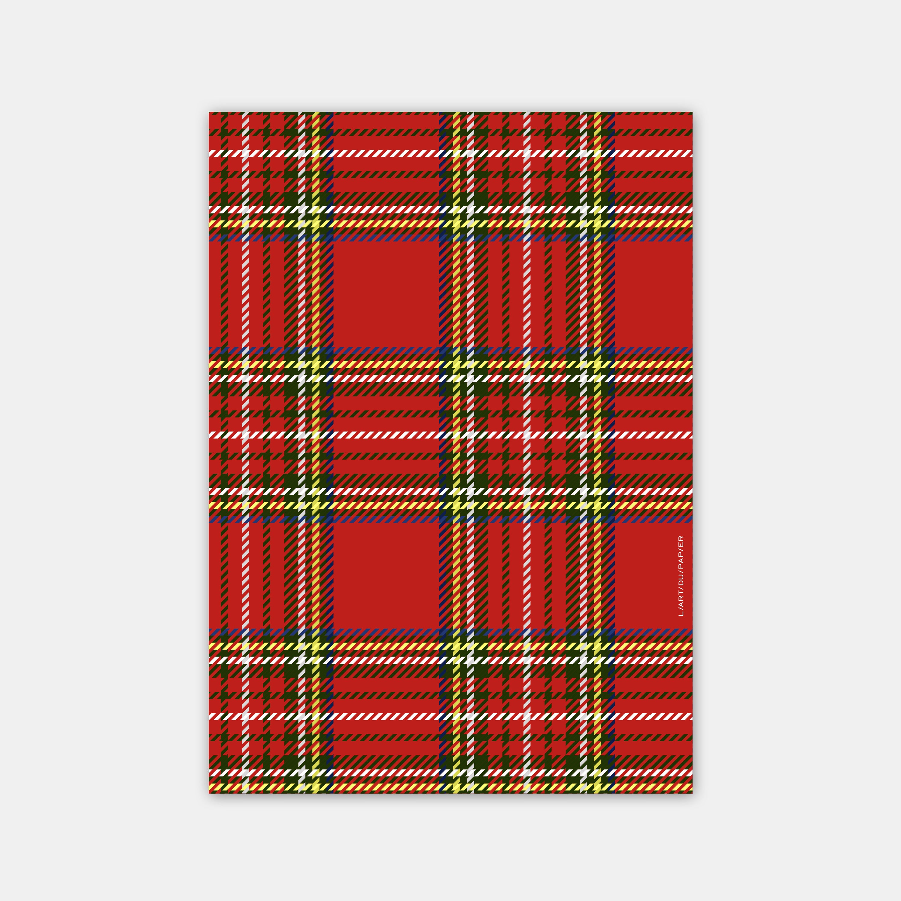 Notre carte de voeux Tartan est un joli mélange d’un beau logo type rétro représentant l'année 2026 et d'un pattern représentant du tartan une étoffe de laine à carreaux de couleurs, typique des peuples celtes accompagnée d'une mise en page élégante composée de typographies modernes.