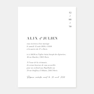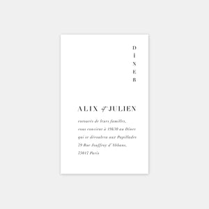 Notre marque table mariage moderne discrétion un joli mélange d'un design minimaliste et moderne, au design épuré et raffiné dont la mise en page est composée de plusieurs typographies. Chaque élément graphique de cette composition est personnalisable dans plusieurs coloris Cette carte est réalisée en format portrait 130x180 mm.