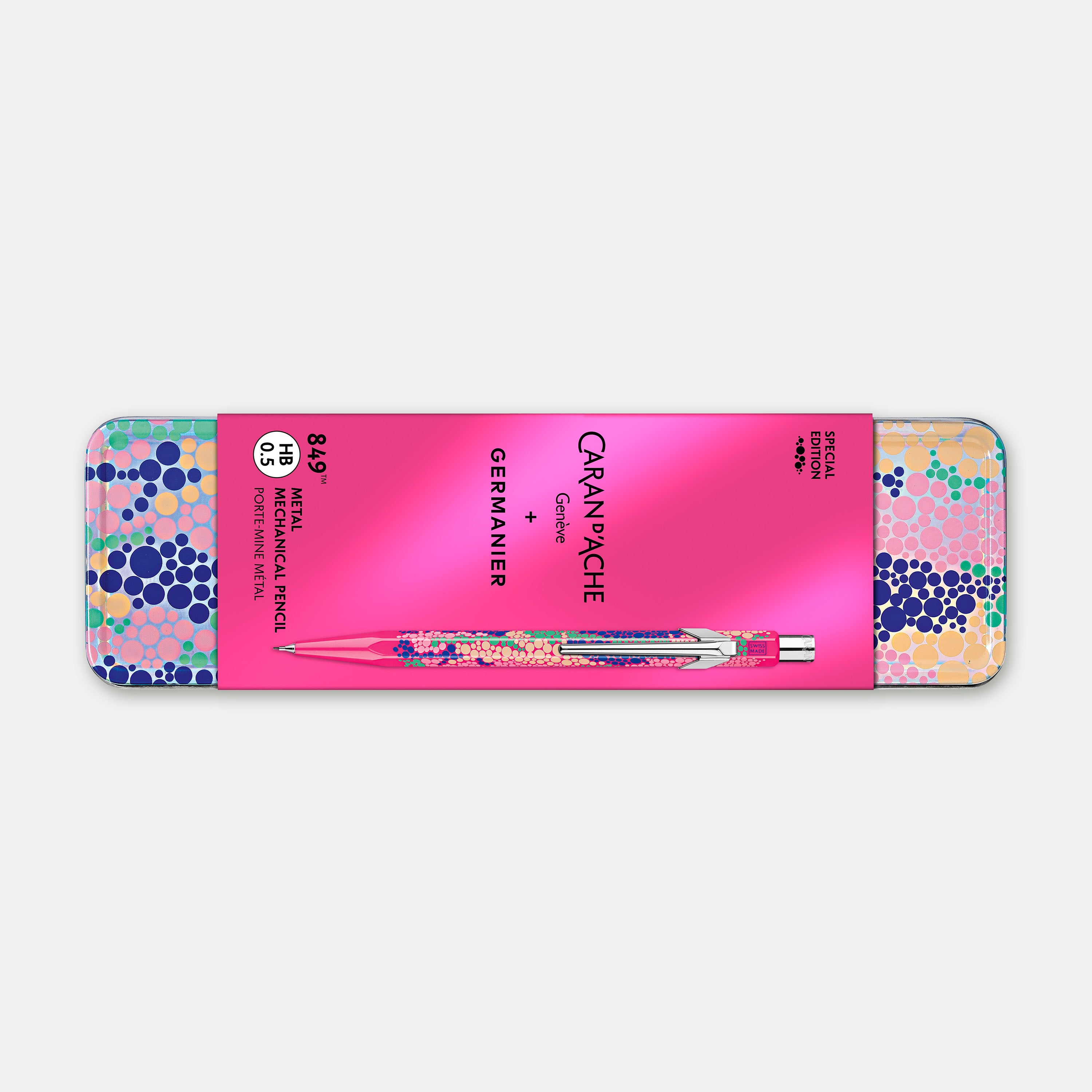 Porte mine 849 Germanier rose fluo : Culte, fun et décontracté à la fois. Silhouette hexagonale en aluminium avec un design graphique qui surfe sur les tendances. Le 849 est le porte mine emblématique de l'Office Line de Caran d'Ache à utiliser en toutes circonstances. Fabriqué en Suisse dans la plus pure tradition de la Maison Caran d'Ache, les porte-mines de la collection 849 sont équipés de la mine 0.7 mm qui leur assure un confort d'écriture unique.